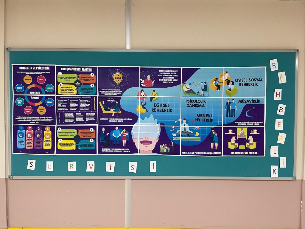 Okulumuzda Rehberlik Servisimizde alanında uzman 2 Psikolojik Danışman ve Rehber Öğretmen Arkadaşımız görev yapmakta olup, öğretmenler kurulu kararı ile 2025-2026 eğitim öğretim yılında 9-10. sınıflar ile Yemliha YILDIRIM, 11-12. sınıflar ile Aliye BAYSAN ilgilenmektedir.